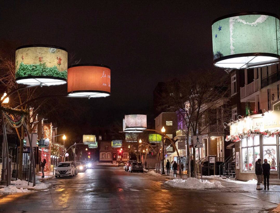 In rolling out the Lumière sur l'Art project, the SDC of the Montcalm district, the Musée national des beaux-arts du Québec, and the city of Quebec City chose to renew the exhibition every year. The giant lampshades are therefore dismantled and reassembled to install the new works. The street lamp structure is imposing, not only to make it highly visible, but also to ensure its resistance to the elements.