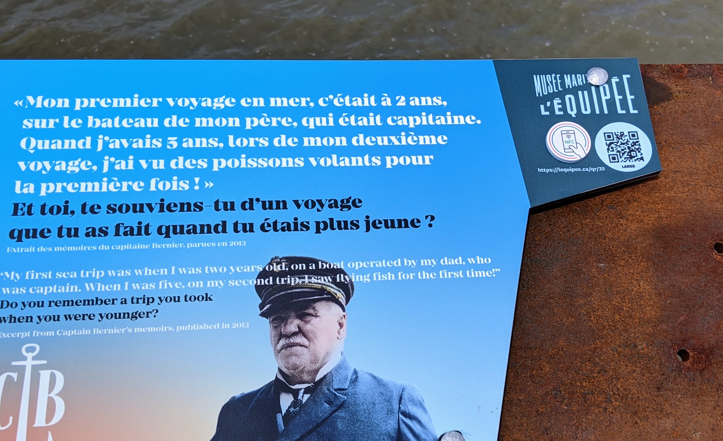 At the stations, visitors can choose from 2 to 5 podcasts, with themes such as “The Sailors of L’Islet” and “The North West Passage.” The audio content is enriched by archival photographs from the museum’s collection as well as videos to round out a dynamic presentation. Each podcast ends with a knowledge-testing quiz.