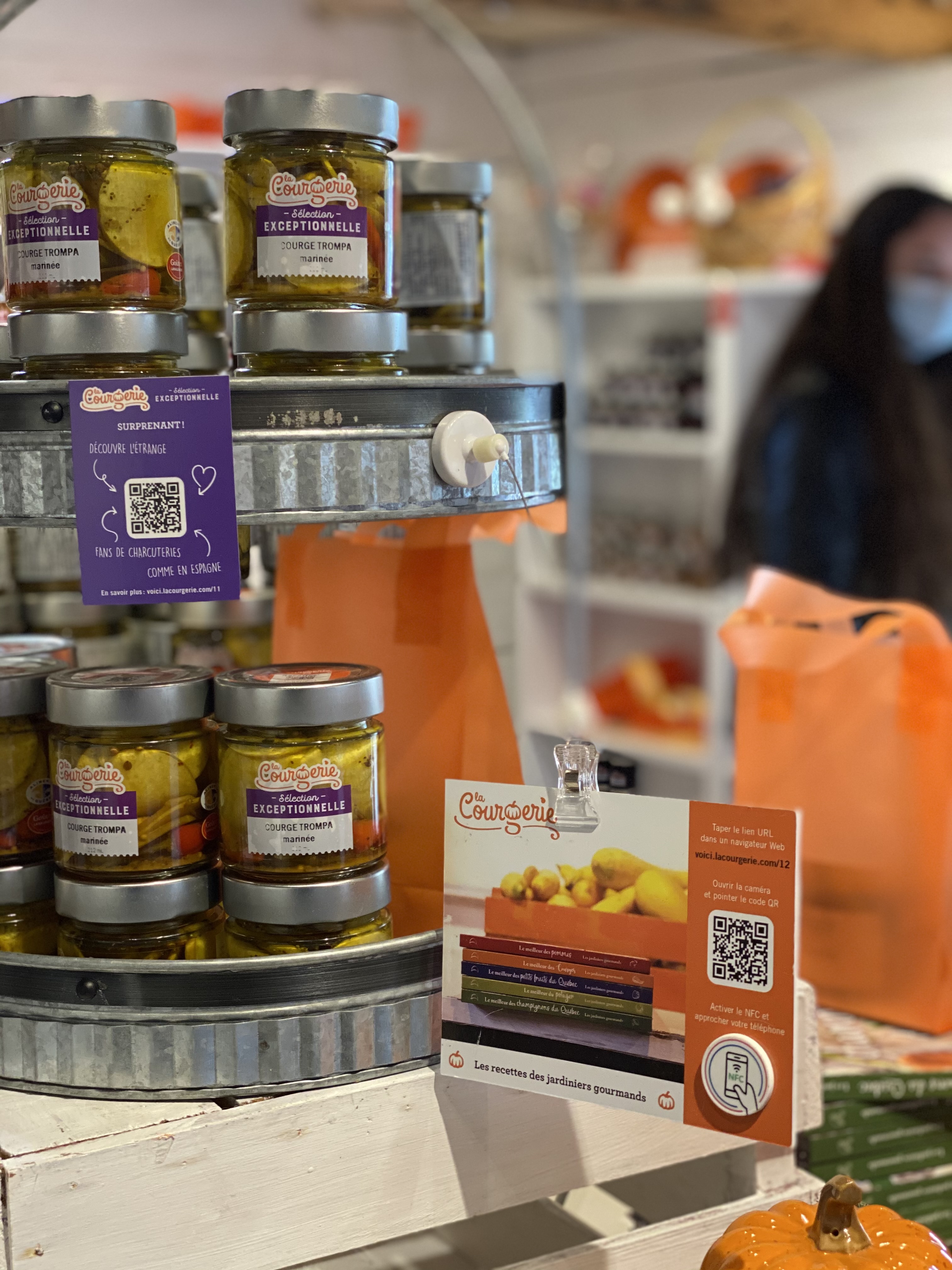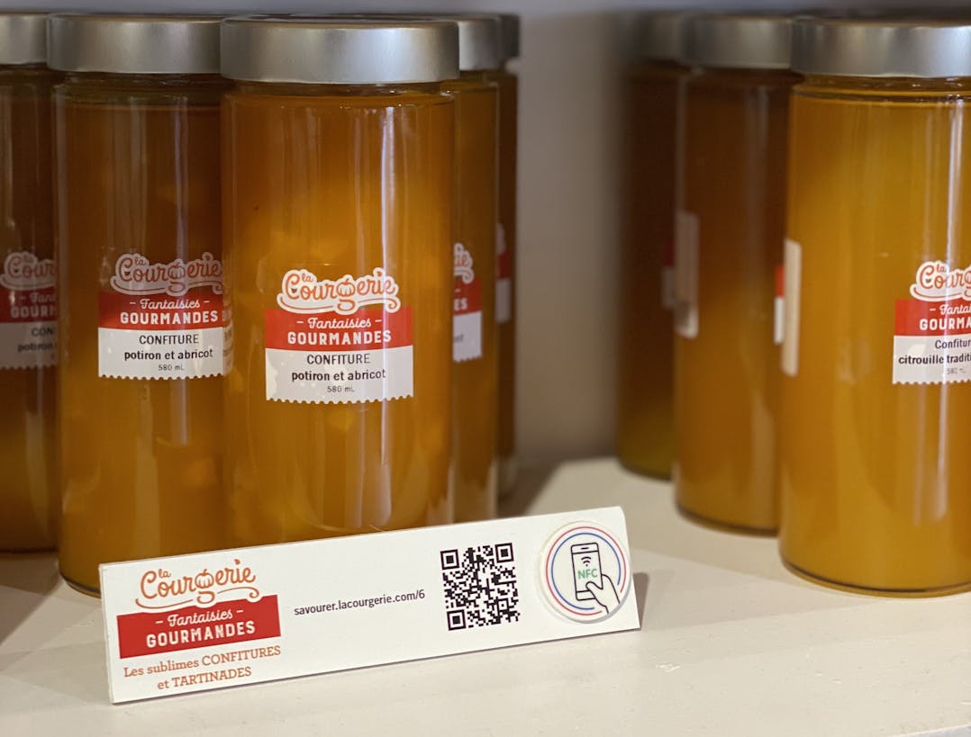 La Courgerie had the idea of scattering enriched labels near its products. On the shelves, QR codes provide customers with a range of information to help them with their purchases. Owner Pascale Coutu affectionately calls them “the tablet gossips”.