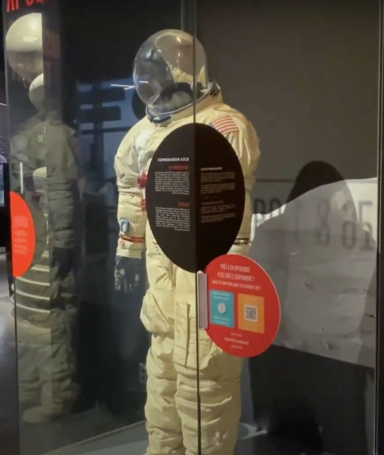 The Cosmodôme's idea was to place an enriched label next to objects requiring further explanation. This invites visitors to scan a QR code or activate an NFC chip to unlock interactive content on their phone.