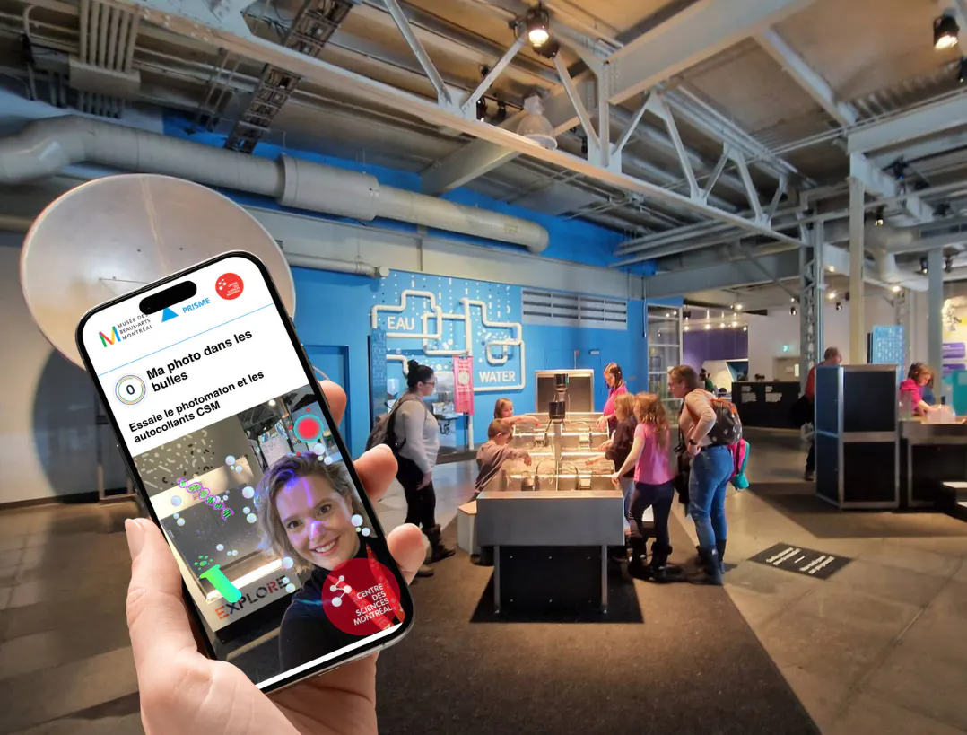 Dans le cadre d’un prototype muséal, l'idée était de créer une série de contenus captivants en utilisant la technologie MySmartJourney afin de découvrir plus en détail le processus physique des bulles de savon. Pour ajouter une touche ludique et mémorable, le musée a intégré un Selfie Booth permettant de capturer des souvenirs en faisant des bulles.