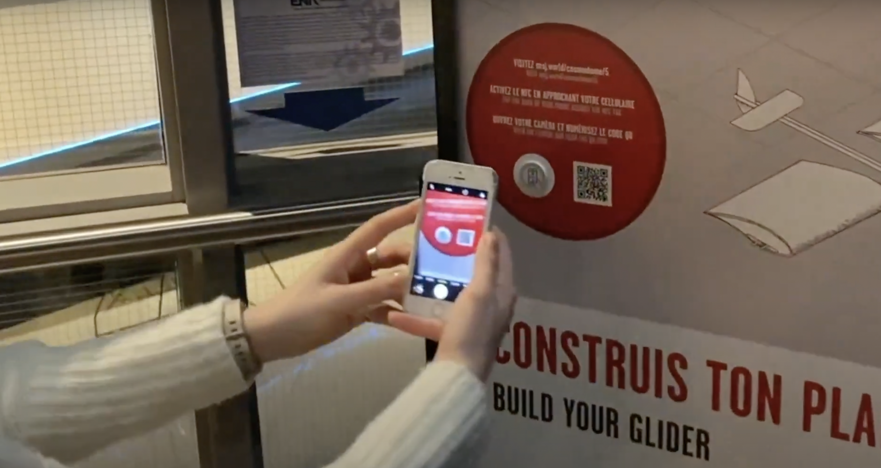 Placé sur un portant facile à déplacer selon les besoins de l’établissement muséal, l’affiche enrichie d’un code QR invite les visiteurs à scanner et à essayer de construire leur propre planeur. Le contenu permet de créer virtuellement un planeur, de télécharger une trousse pour en créer un physique et une vidéo qui présente aussi les étapes de montage.
